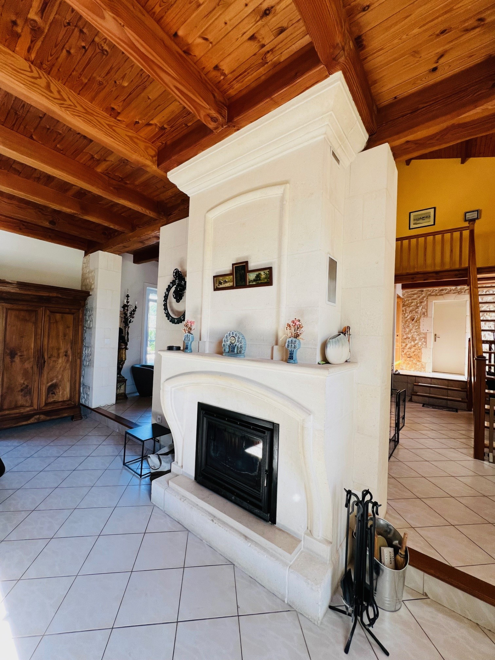 Vous découvrirez une rénovation de qualité, des éléments anciens toujours présents comme une très belle cheminée monumentale ou un ancien abreuvoir en pierre.