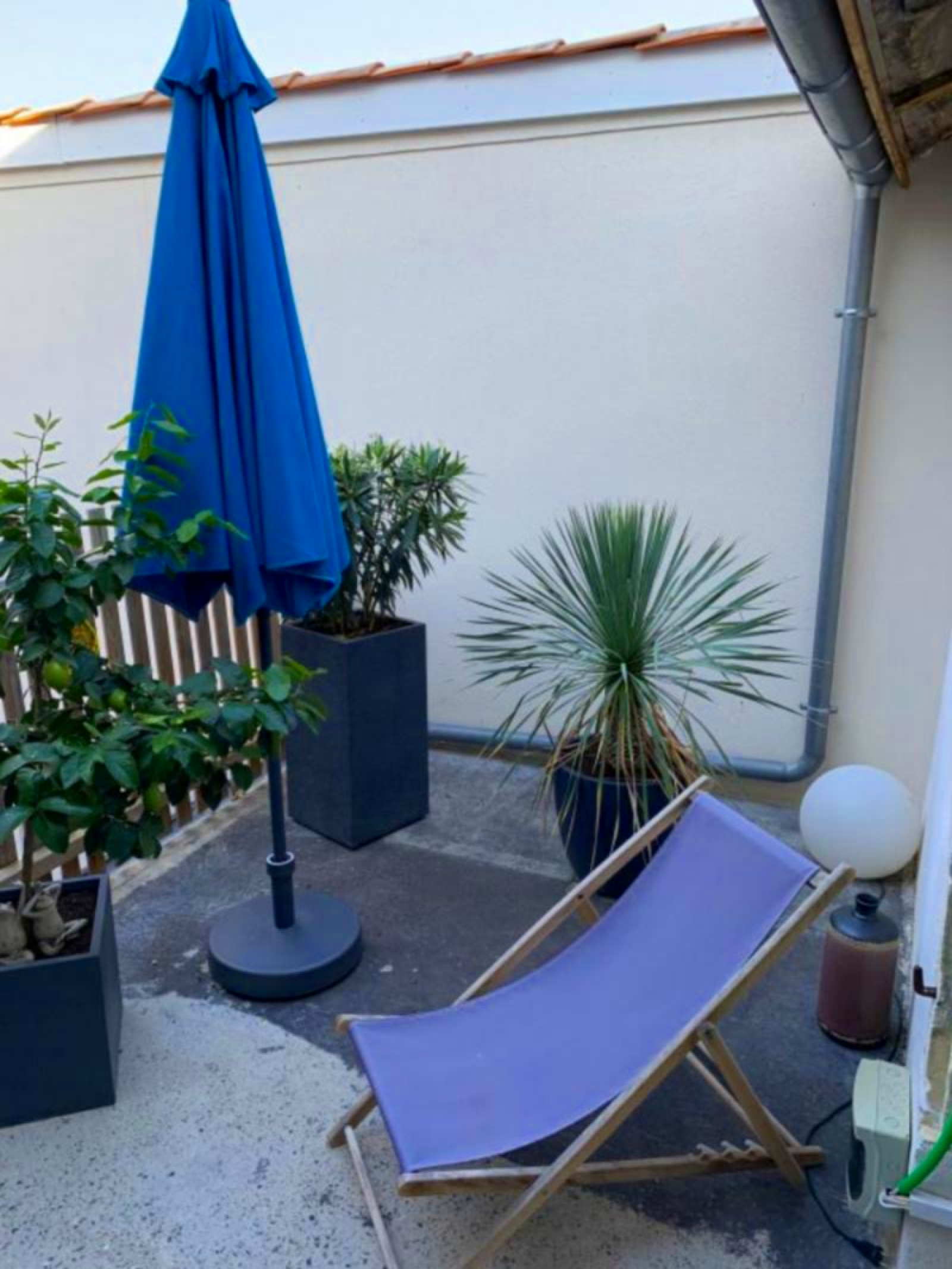 Patio de 10 m² env. / cave / solarium à l'étage / pas de jardin.
