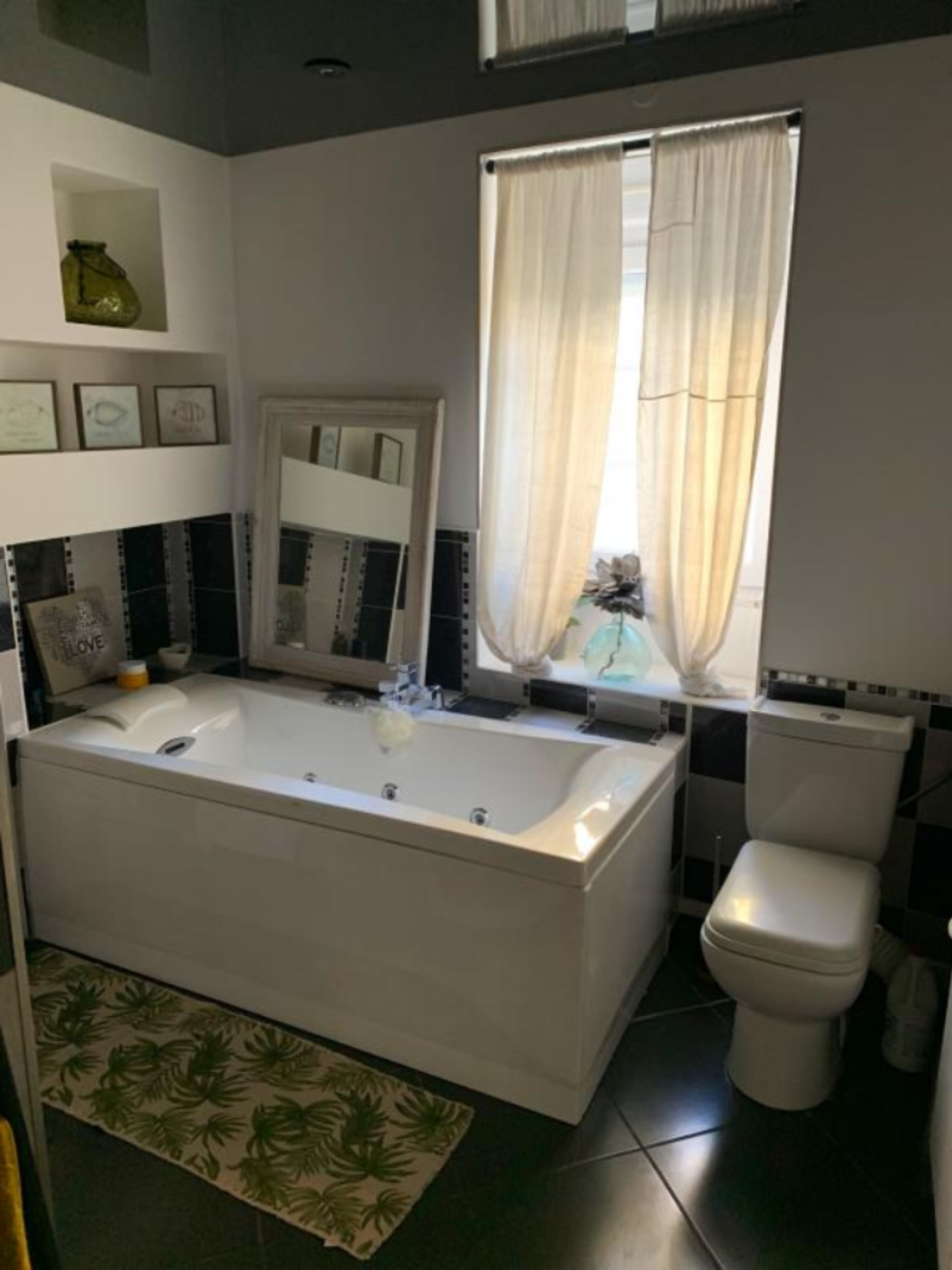 Suite parentale comportant une grande chambre (15 m²) avec sa salle de bain (baignoire balnéo et cabine de couche)/wc.