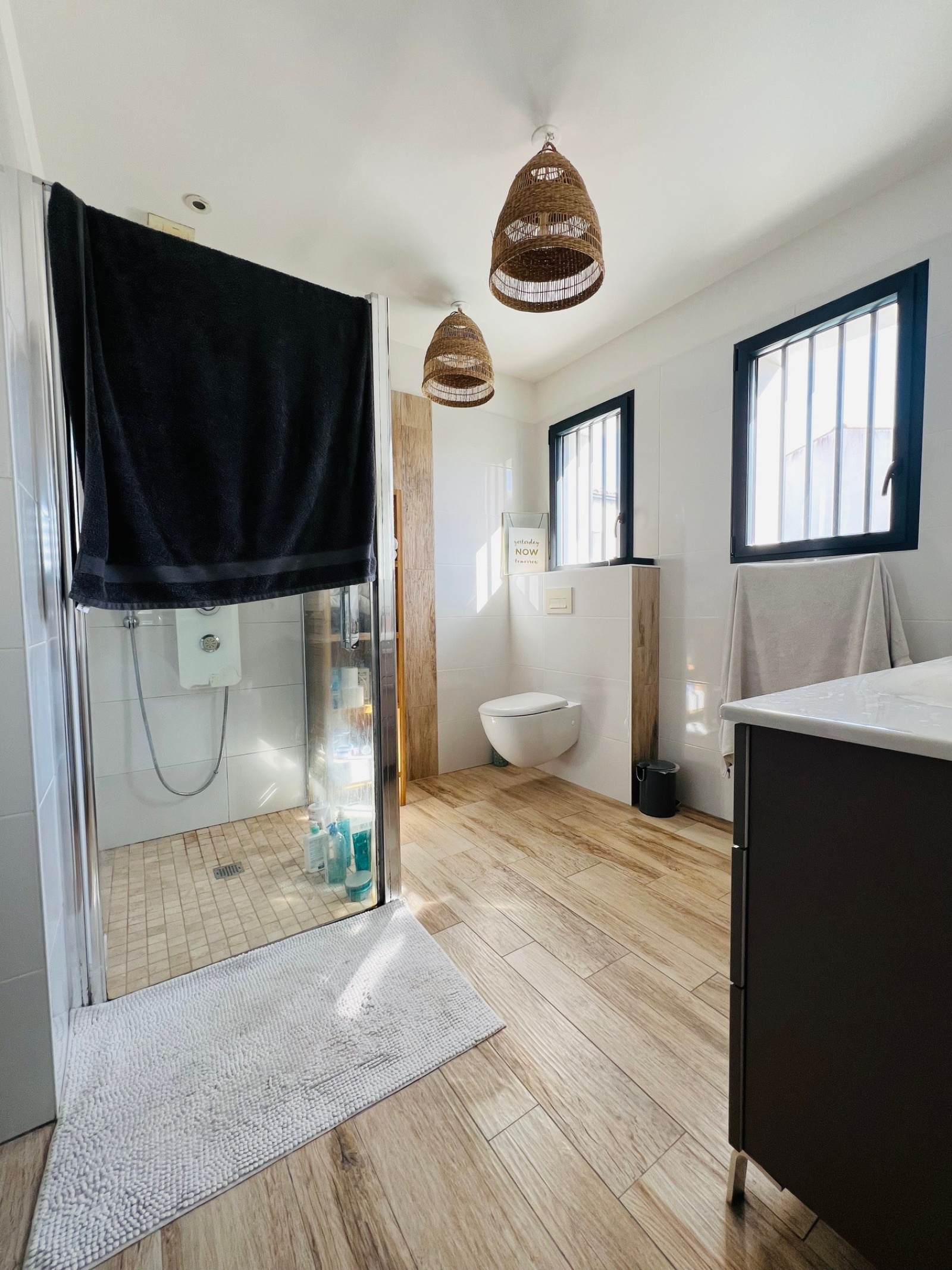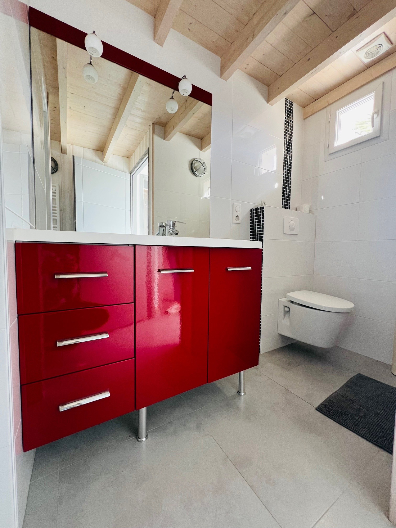 Côté nuit, vous trouverez trois chambres, dont deux très confortables avec grands placards, une salle d’eau et un WC suspendu indépendant.