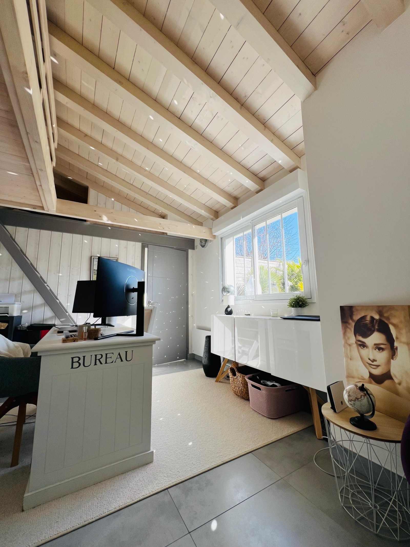 Un bureau indépendant avec mezzanine, salle d’eau et WC suspendu vient compléter cette villa.